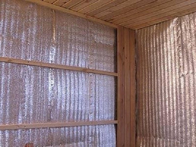 - Les travaux commencent par l'imperméabilisation des murs. La condensation se forme lorsque l'air chaud entre en contact avec une surface froide. Cela conduit à la pourriture et à la destruction des murs. Pour l'imperméabilisation dans un bain, il est préférable de prendre des matériaux recouverts de papier d'aluminium - ils réfléchissent le rayonnement infrarouge dans la pièce.