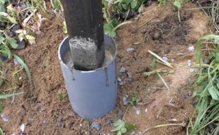 - Installation dans un doigt de gant. Elle diffère de la méthode de bétonnage en ce que le poteau est placé dans un tuyau en plastique, en métal ou dans une boîte en planches. L'espace entre le poteau et le manchon est bétonné, et l'espace extérieur est recouvert de terre et pisé.