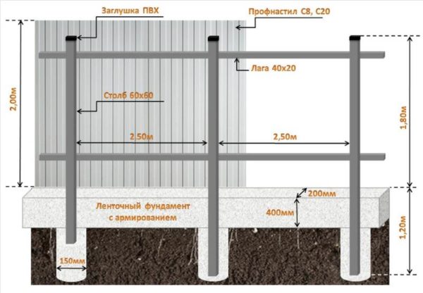 Lors du calcul, il est pris en compte que le pilier est enfoncé dans le sol de 1 à 1,5 m. Si vous le faites moins, la clôture peut s'incliner hors saison, car le sol deviendra humide et ne résistera pas à la charge . Sur les terrains de soulèvement, des piliers peu profonds peuvent être évincés et perdre de la verticalité, détruisant la clôture.