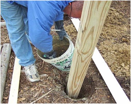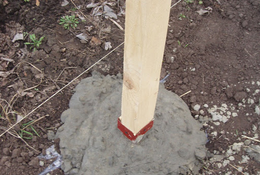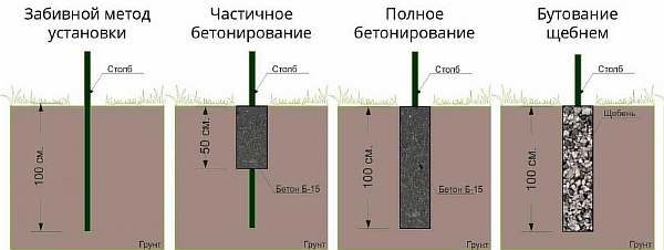 - Par bétonnage. Découpez un trou d'un diamètre de 150 mm et d'une profondeur de 600 mm. Un pilier prétraité est placé et le béton est coulé.