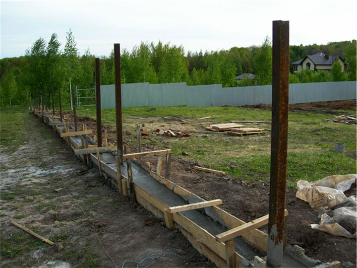 Pour les clôtures avec supports en pierre, les fondations en bandes sont le plus souvent coulées. La même méthode est utilisée pour exclure un tunnel sous le mur.