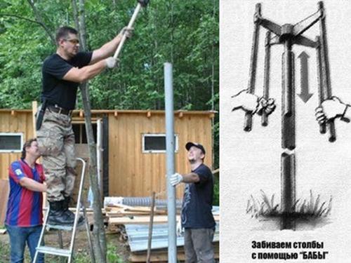 - Utilisation de la poupée. Une emphase est attachée au poste, et les coups sont portés avec une grand-mère. Il est important de garder un œil sur la verticale. Il est d'usage d'utiliser la poupée pour les poteaux supérieurs à 3 m.