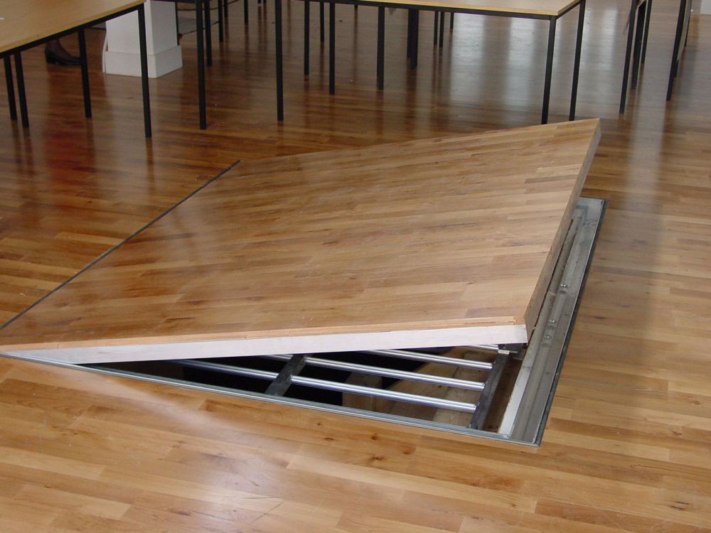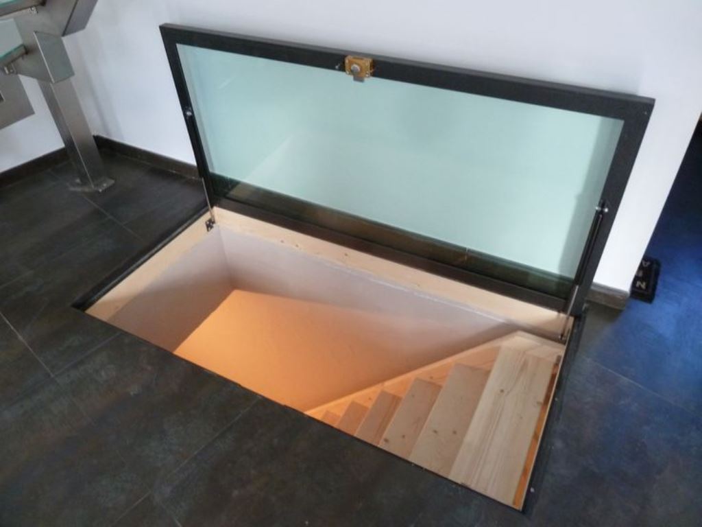 Pour masquer la trappe, elle est souvent garnie du même matériau à partir duquel le revêtement de sol est fabriqué, ou un modèle approprié est spécialement acheté. Il est préférable de placer la structure dans la cuisine, le garage ou le garde-manger. Dans les pièces à vivre, les trappes sont rarement réalisées pour ne pas gâcher l'intérieur de la pièce.