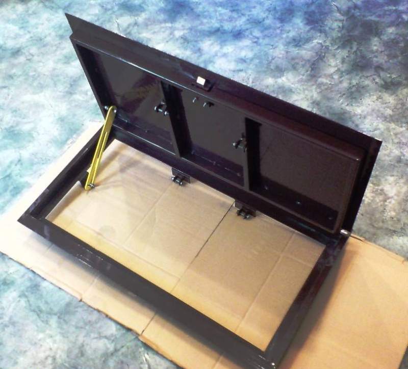 La trappe pour les tuiles est toujours constituée d'un cadre métallique. Il est équipé d'une serrure cachée et de lacunes technologiques.