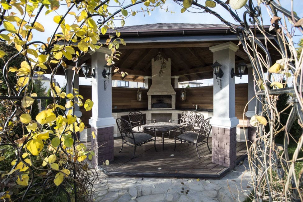 Un gazebo d'angle avec barbecue est pratique et pratique à cet égard: