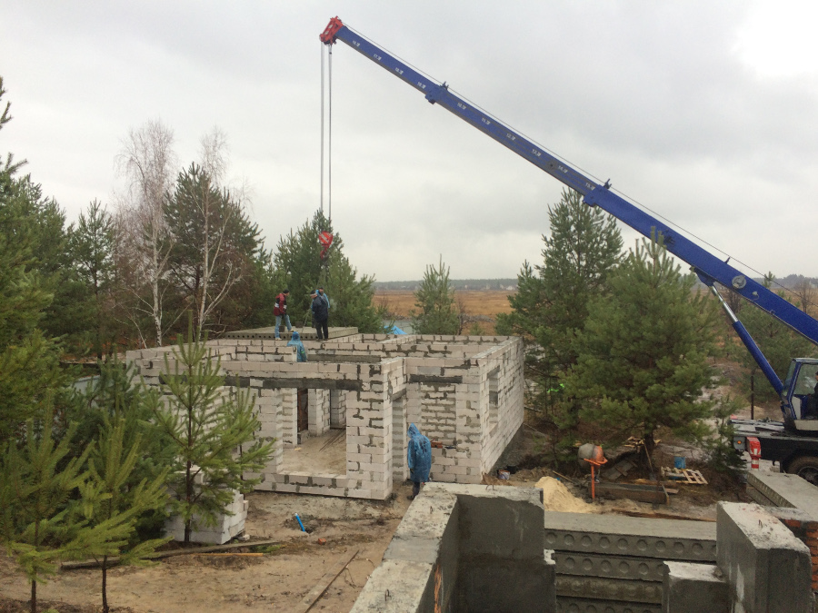 Lorsque le mélange est sec (après 2 à 4 semaines), vous pouvez construire des murs à partir de blocs aérés. Avant de les installer, la base est recouverte d'une imperméabilisation. Les murs extérieurs et intérieurs sont réalisés en parallèle. Des ceintures de renfort sont montées au-dessus des ouvertures des fenêtres et des portes. Avant de poser la partie en bois, une couche d'imperméabilisation est posée sur le béton cellulaire.