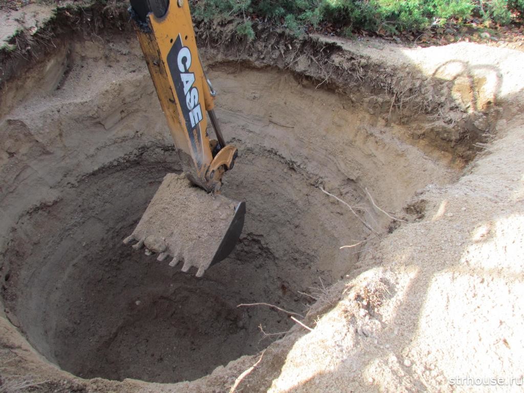 Creusez une fosse ronde ou carrée. La forme préférée dépend de la version choisie des murs. La taille de la fosse en profondeur est de 2,5 à 3 mètres. Si un conteneur est utilisé, le diamètre de la fosse est de 15 à 20 cm plus grand que le sien.