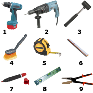 - ciseaux à métaux, scie à métaux, marteau, pinces;