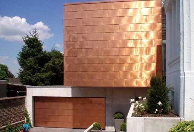 Le cuivre n'a pas perdu de sa popularité même après la découverte du fer. Le matériau est utilisé dans des projets de conception et de construction, il est utilisé avec succès pour décorer les murs d'un immeuble résidentiel à partir d'un bar ou pour recouvrir une datcha de parement.