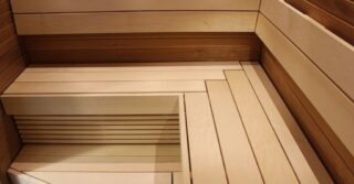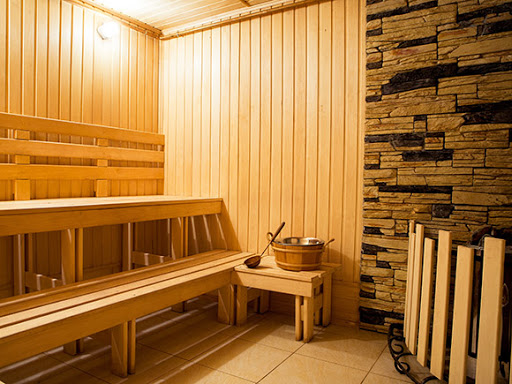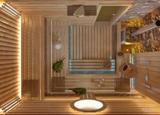 Le hammam utilise des matériaux capables de résister à une forte chaleur et à une humidité élevée, tout en n'émettant pas de composants nocifs pour la santé dans l'atmosphère. À l'intérieur, des bancs à un niveau, des étagères à deux niveaux en bois, des bûches taillées avec des étagères en bois sont placés pour faciliter le repos.