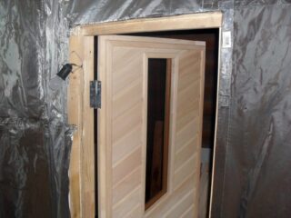 La porte du hammam est prévue depuis le dressing, parfois l'entrée du département de lavage se fait. Pour le hammam, selon les consignes de sécurité, il est obligatoire d'ouvrir la porte vers l'extérieur, loin de vous. Le rabat de la boîte est placé étroitement, sans espaces, alors qu'il doit y avoir une ouverture facile. Sur les porches, des joints isolants sont utilisés pour que l'air chaud ne quitte pas le hammam.