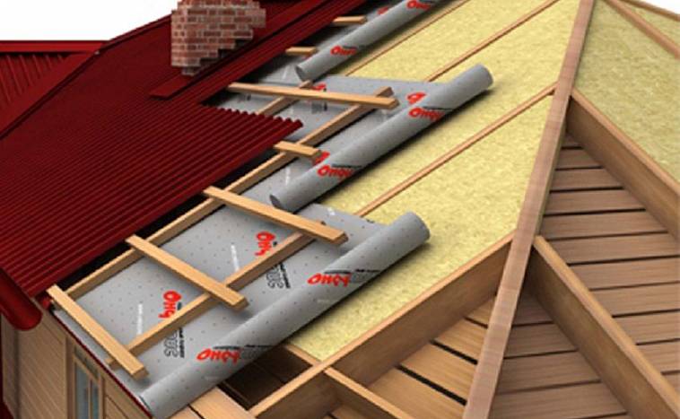 - Imperméabilisation. Sert à protéger l'isolation et la décoration intérieure de l'humidité. Des bandes de tissu imperméable sont appliquées sur les chevrons avec un léger affaissement allant jusqu'à 3 cm, ce qui lui permet de rétrécir lorsqu'il est refroidi. La fixation est réalisée avec des agrafes ou des rails.