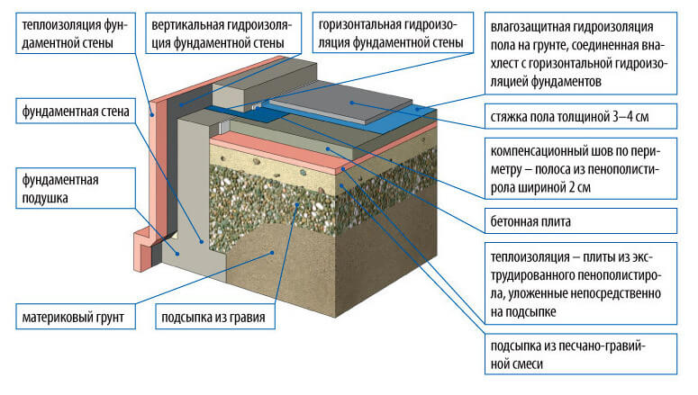 Régime général. En fonction d'autres caractéristiques - le type de fondation, le matériau d'isolation - la conception peut être modifiée.