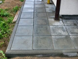 Les dalles de pavage et les pavés sont le type de finition le plus courant pour la charpente en béton. Les matériaux ont un prix abordable et ne sont pas inférieurs à la pierre naturelle en termes de paramètres de performance.