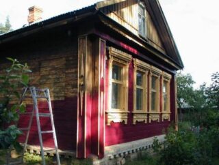 La peinture doit également être retirée des joints des planches ou des bûches. Pour que l'opération soit effectuée plus rapidement, il faut d'abord retirer les plateaux, gouttières et volets. Même si le revêtement est difficile à enlever, il faut l'enlever, sinon, après l'application d'une nouvelle peinture, il risque de se décoller. La poussière et la saleté sont également enlevées de la façade de l'habitation.
