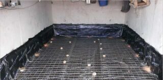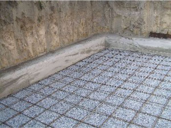 La structure devant supporter de lourdes charges, elle doit être renforcée. Pour ce faire, utilisez des tiges d'un diamètre de 0,8 à 0,9 cm, parmi lesquelles tricotez un maillage avec des cellules de 15 à 20 cm, fixez-le de manière à ce qu'il se trouve à 4-5 cm au-dessus de la surface du sol. Pour cela, des accessoires en métal ou en plastique sont utilisés. Une couche supplémentaire de maille est placée au-dessus de la zone où la machine sera située. Cela donnera à la structure une plus grande résistance. Il doit y avoir une distance d'environ 5 cm entre les extrémités du filet et les murs.