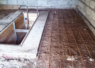 - une chape de béton est coulée.