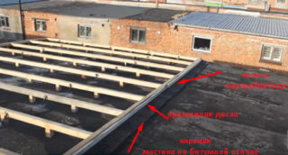 - Posez un imperméabilisant - un meilleur matériau de toiture en 2 couches. Les joints sont scellés avec du mastic bitumineux.