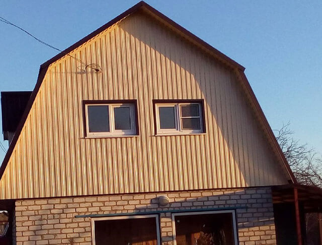 Si vous le souhaitez, le fronton peut être cousu avec une tôle profilée en métal ou une imitation d'arbre.