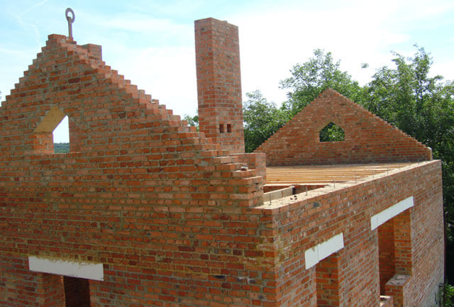 - Tant que le mortier n'a pas complètement durci, il ne faut pas appliquer de charges importantes sur le fronton en brique, par exemple les poutres longitudinales du système de chevrons.