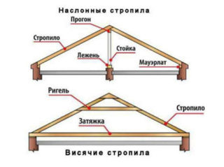 Les bases des toits en pente sont fabriquées selon la technologie des chevrons en couches ou suspendus.