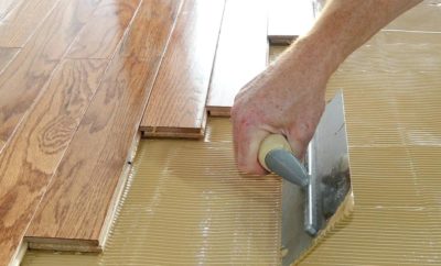 La méthode est utilisée si la dalle du balcon est plate, il n'y a pas de gouttes, de pentes dessus. Pour la fixation du parquet, prenez de la colle à parquet à un ou deux composants.