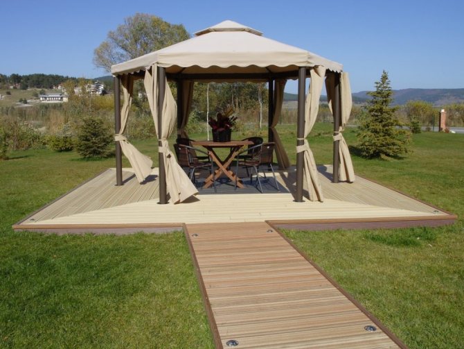- Mobilité. Le gazebo est installé pour toujours, et le cabanon couvert peut être placé n'importe où, changeant d'emplacement plusieurs fois par saison.