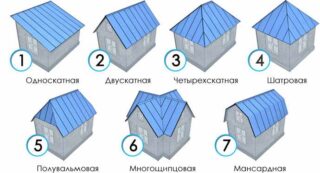 La toiture est choisie en fonction du projet. Elle n'est pas nécessaire pour une hutte. Pour un bungalow, vous aurez besoin d'un toit à une ou deux pentes avec un surplomb prolongé - pour la véranda. Le bâtiment à ossature est équipé d'un toit à deux versants.