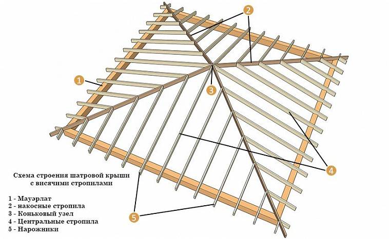 Un tel toit convient à un bâtiment à base carrée. Il se compose de 4 pistes de forme et de taille identiques. Le faîte d'un tel toit est constitué des pieds des chevrons combinés en un point. Cela le distingue des structures à pignon.