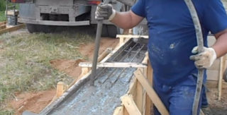 - Le béton est coulé en couches simultanément sur tout le périmètre. S'il est nécessaire d'arrêter le bétonnage jusqu'au lendemain, une réduction progressive de l'espace de béton est effectuée, un joint vertical-vertical n'est pas autorisé.