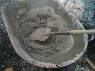 - ciment M 350 ou M 400, pierre concassée de taille moyenne, sable ;