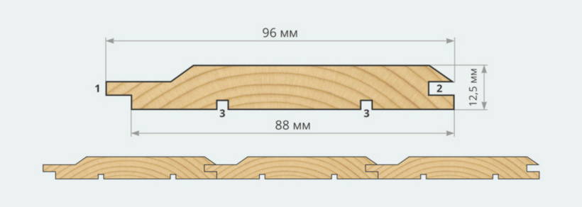 La doublure est une bande, d'un côté de laquelle est faite une saillie (pointe) et de l'autre - un évidement (rainure). Après assemblage, les pièces forment un seul blindage sans fentes traversantes. La doublure a une crête dont la longueur est supérieure de 1 à 2 cm à la taille de l'évidement. Pour cette raison, après l'assemblage, la surface devient gaufrée, ce qui confère à la pièce un style et un charme particuliers.
