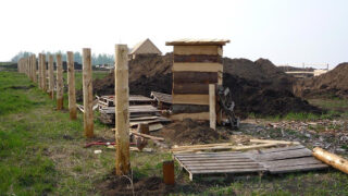 Il est nécessaire de creuser les piliers dans le sol, après avoir préalablement enveloppé la partie inférieure de matériau de toiture ou enduit de bitume fondu afin que les piliers ne deviennent pas inutilisables à cause de la pourriture. Le sommet des éléments est conçu sous la forme d'un cône pour accélérer l'écoulement de l'eau.