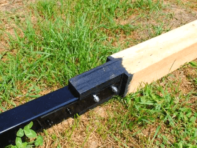 Ils essaient d'enterrer le talon du pilier dans le mélange de pierre concassée de sable. Un support métallique est cloué à la semelle d'un tronc en bois pour augmenter la résistance et la stabilité.
