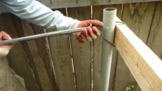 - Préparation des fosses. Si la clôture a une faible hauteur, leur profondeur ne dépasse pas 50 cm.Pour les grandes structures, les supports sont approfondis de 1 m.Le diamètre de la fosse est de 3 fois la section du tuyau. Un coussin de sable (5 cm) et de pierre concassée (10 cm) est placé au fond. Les deux couches sont soigneusement compactées.