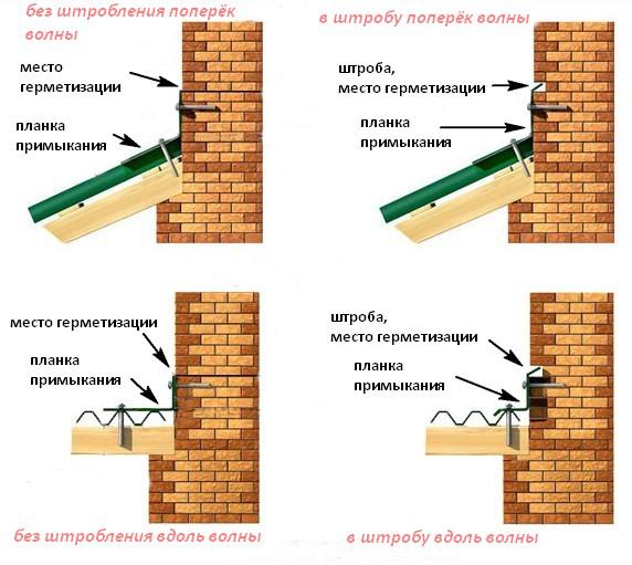 - Plus haut. Empilé sur les surfaces externes à joindre. La fixation est réalisée sur des vis autotaraudeuses avec une rondelle en silicone, toutes les cavités et fissures sont scellées avec un mastic.