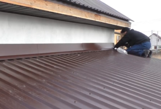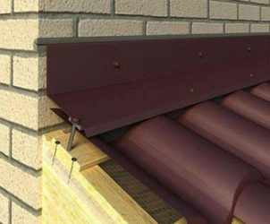 - Le toit est constitué de profilés métalliques ou de tuiles métalliques. Les tuiles sont fixées au béton cellulaire et à la brique avec des pièces façonnées qui répètent son profil. Lorsque le revêtement de sol a une grande surface, une coupe est faite dans le mur et des feuilles y sont déjà insérées. L'évidement est ensuite isolé et fermé avec une bande ou un ruban. Si la maison est en bois, une planche est clouée sur le joint, ce qui la recouvre complètement.