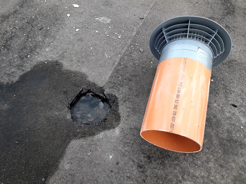 Des difficultés surviennent lors de l'installation d'aérateurs dans une toiture exploitée, car le matériau de la couche de finition ne le permet pas toujours. Le tube pénètre toutes les couches et atteint le pare-vapeur. Le trou d'où dépasse le tuyau de dérivation est soigneusement scellé avec du caoutchouc.