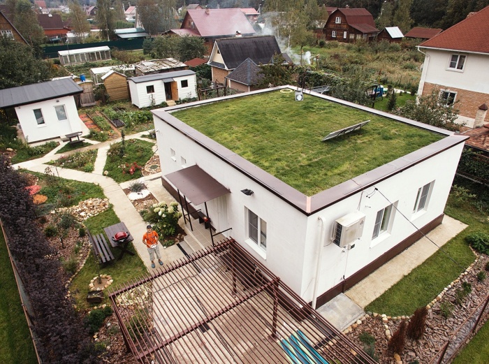 - Utilisation rationnelle des combles. La surface est utilisée pour aménager des aires de loisirs, un jardin et installer des panneaux solaires.