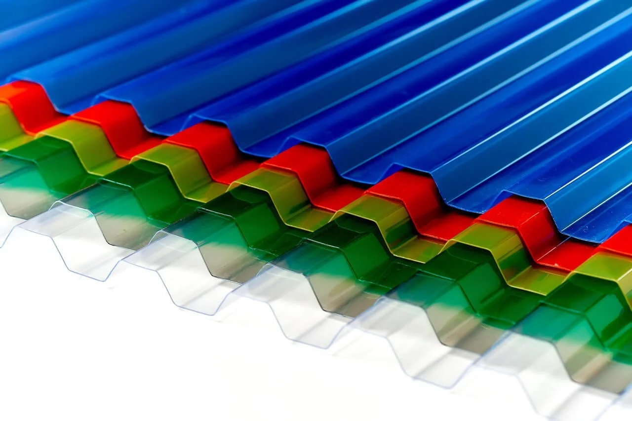 La feuille ondulée en plastique ondulé rouge, vert, bleu est utilisée moins souvent, elles sont placées sous la forme de vitraux dans la construction de complexes de divertissement, de belvédères, de clôtures. Les propriétés de tous types dépendent des composants d'origine des matières premières, des plastifiants, des additifs modificateurs, des stabilisants de couleur et des pigments.