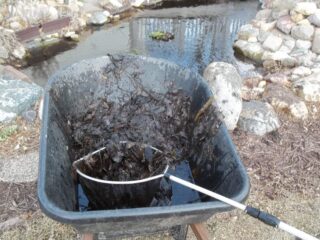- Les feuilles, fleurs, branches et autres débris sont enlevés avec un filet.