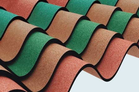 Le look moderne de la toiture en fibre de verre. La base est imprégnée de bitume et recouverte de grains de basalte. Ils sont produits sous différentes formes, il existe des couleurs rectangulaires, arrondies, différentes. Une base solide est placée sous le matériau de construction et les produits y sont collés et fixés en plus avec des clous. La couche inférieure est recouverte de mastic, qui est chauffé avant le collage.