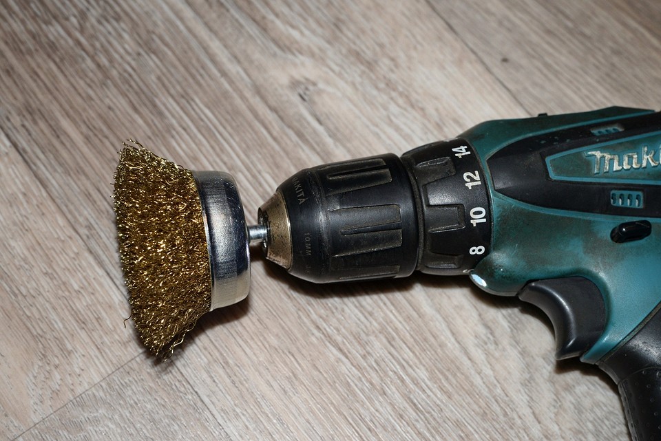 - Nettoyage de l'avion de l'ancien film de peinture. Réalisé à l'aide d'une brosse métallique à dents métalliques. Vous pouvez utiliser un sèche-cheveux pour soulever les couches, puis les gratter avec une spatule. Un accessoire spécial à grain fin est placé sur le broyeur pour meuler la surface.