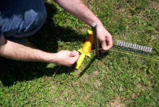 Avant d'ériger une clôture, la végétation est enlevée le long du périmètre de la future structure, le chanvre (le cas échéant) est arraché et l'herbe est tondue. Si le terrain a une pente, elle n'a pas besoin d'être corrigée. Si la clôture a déjà été installée auparavant, elle doit également être complètement retirée. Ensuite, des piquets (0,6-0,7 m de haut) sont montés aux emplacements des futurs supports et une corde est tendue entre eux, marquant les limites. La distance entre les poteaux est de 2-2,5 m.