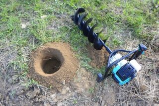 - Exactement à l'endroit marqué, ils creusent un trou de 1,5 m de profondeur et de 15 à 20 cm de diamètre.Utilisez une pelle à baïonnette ou un yamobur mécanisé. Dans les endroits où il y a des racines d'arbres, faites preuve de prudence - un outil puissant, s'il se coince, vous pouvez vous blesser gravement.