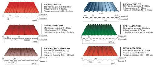 - С-8 - profilé mural avec une hauteur de vague de 8 mm, adapté aux clôtures jusqu'à 1,5 m avec de petites portées jusqu'à 2 m, ainsi qu'aux clôtures temporaires;