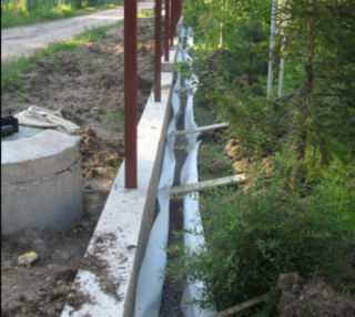 Une fois la fondation installée, elle est recouverte d'une couche de matériau de toiture afin que l'humidité ne soit pas transférée à la structure des piliers, de la brique ou de la maçonnerie. Lors du bétonnage des supports métalliques, leur partie inférieure est recouverte de résine, enveloppée de deux couches de papier goudronné ou de matériau de toiture pour éviter la rouille.
