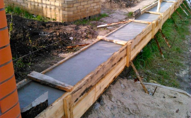 Avant le bétonnage, à un niveau de 20 à 30 cm du pied de la future fondation, un tuyau de drainage avec une pente est placé, qui est retiré dans le collecteur d'égout pluvial. Le béton à couler est préparé indépendamment dans des bétonnières. La méthode manuelle de pétrissage sur une tôle ou dans une auge n'est plus utilisée.