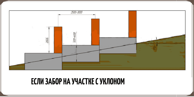 La bande principale de la clôture à lames avec piliers, dont le remplissage est en tôle, est approfondie de 0,6 à 0,8 m, ce qui est largement suffisant compte tenu du poids de la couture des travées et de la dérive de la structure. Pour les clôtures en béton massif en pierre et en brique, le ruban est approfondi de 0,9 à 1,2 m.