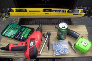 - équerre de menuiserie, mètre ruban 5 m, niveau, crayon ;
